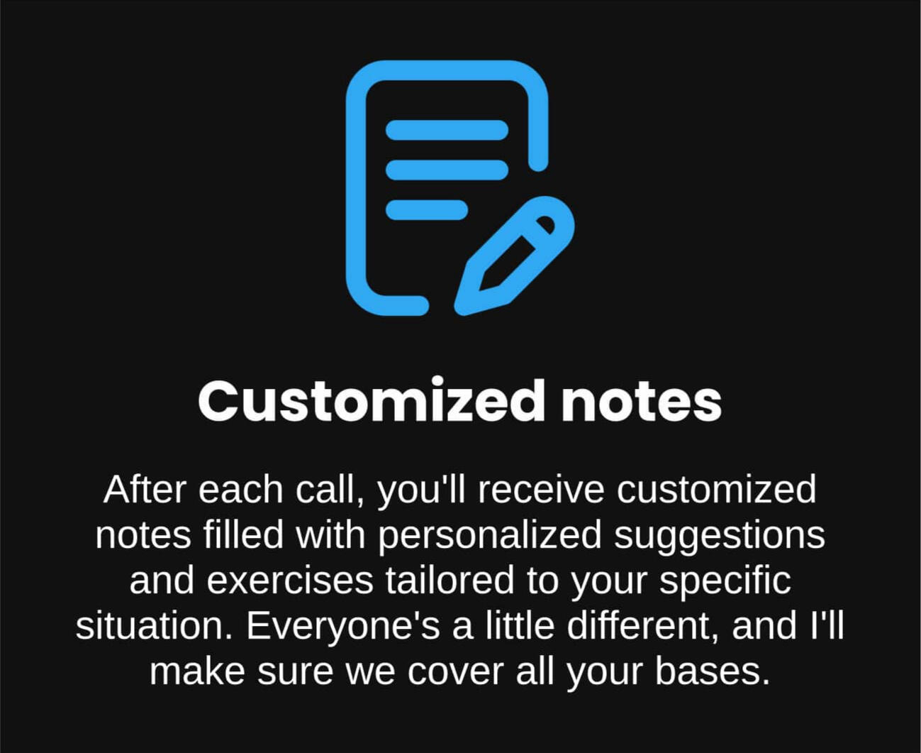 We'll have already made significant progress retraining the addicted part of your brain.Guilty feelings will have vanished.You'll feel more pure and confident with nothing to hide.If you have a wife or girlfriend she will notice the change in you.In your mood, in your behavior.In your performance.If you don't have a girlfriend, you’ll feel more confident with girls who will also notice a change in you for the better.From the third call, we start with super individualized techniques.That way, our focus is custom-tailored to your specific needs.And we begin to build the foundations of your new life.